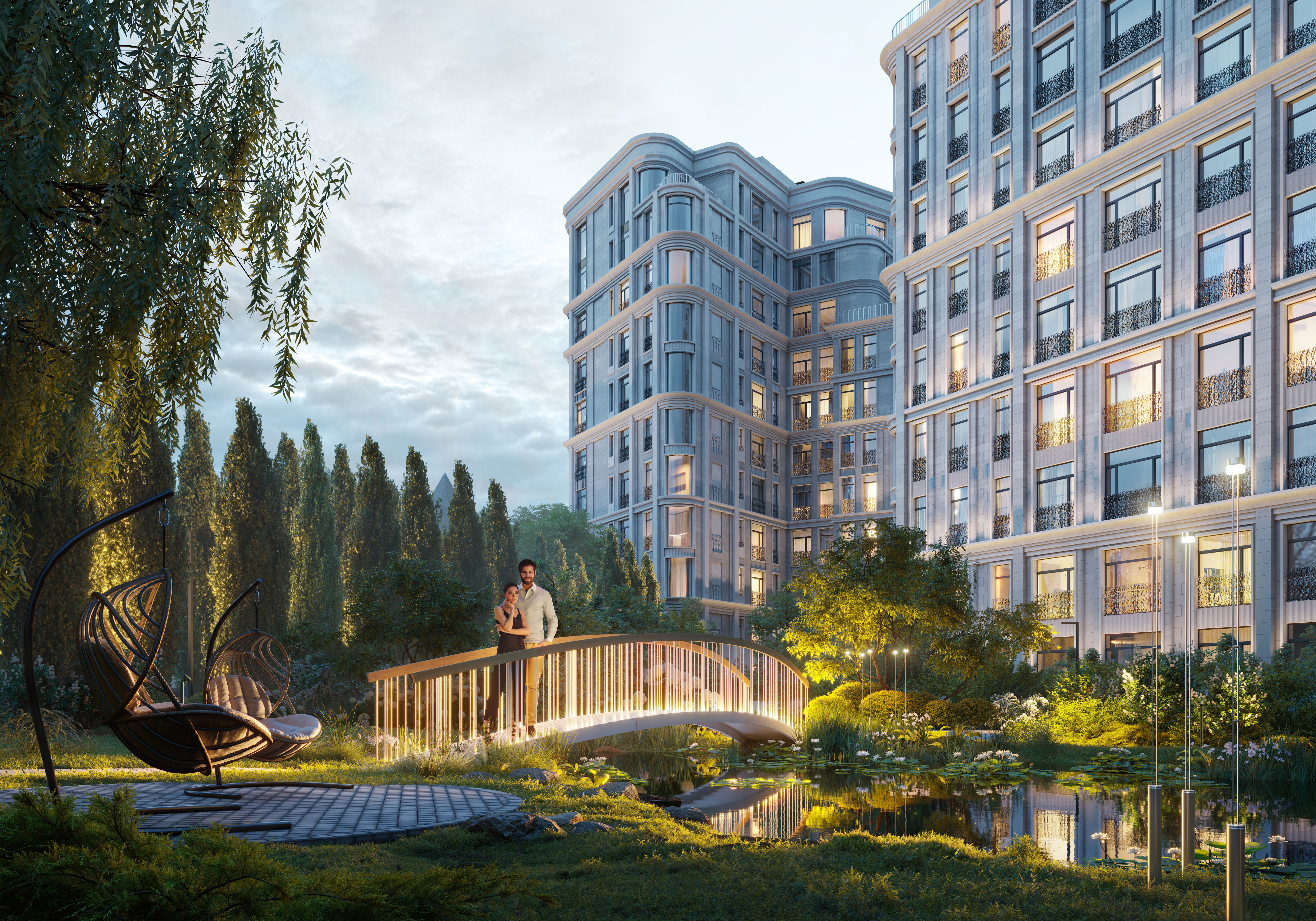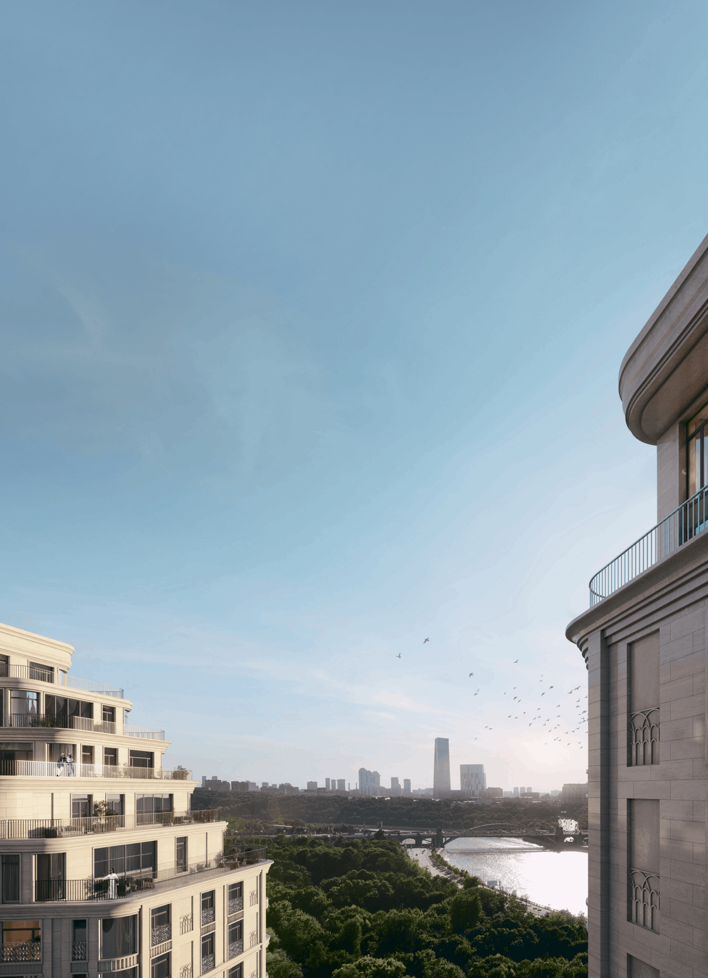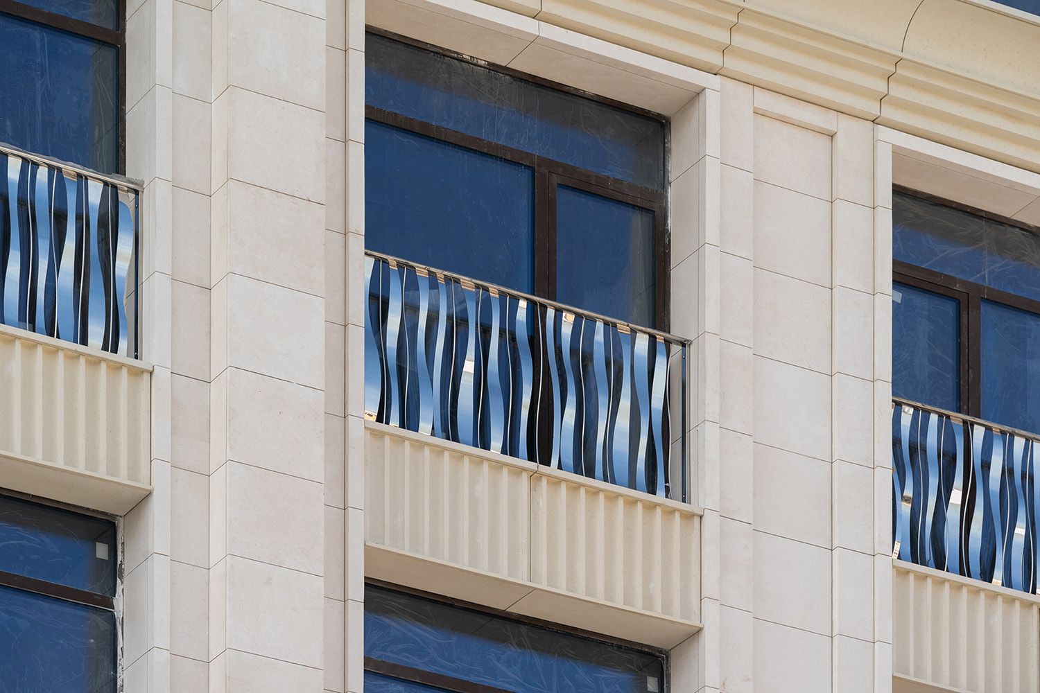 Респектабельные фасады облицованы гранитом, мрамором и украшены изысканной резьбой. За легкими решетками французских балконов —панорамные окна из моллированного стекла. Невесомые на вид металлические декоративные элементы создают ощущение легкости и волшебства.