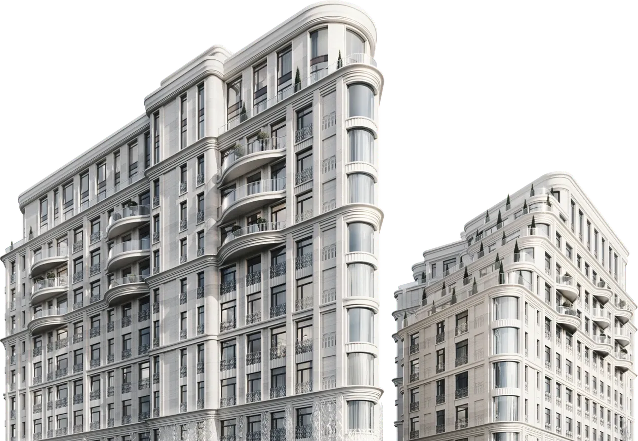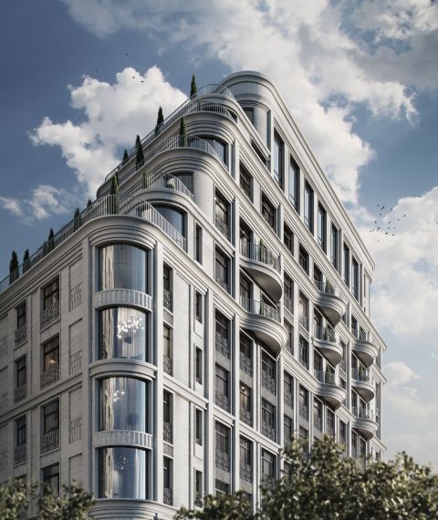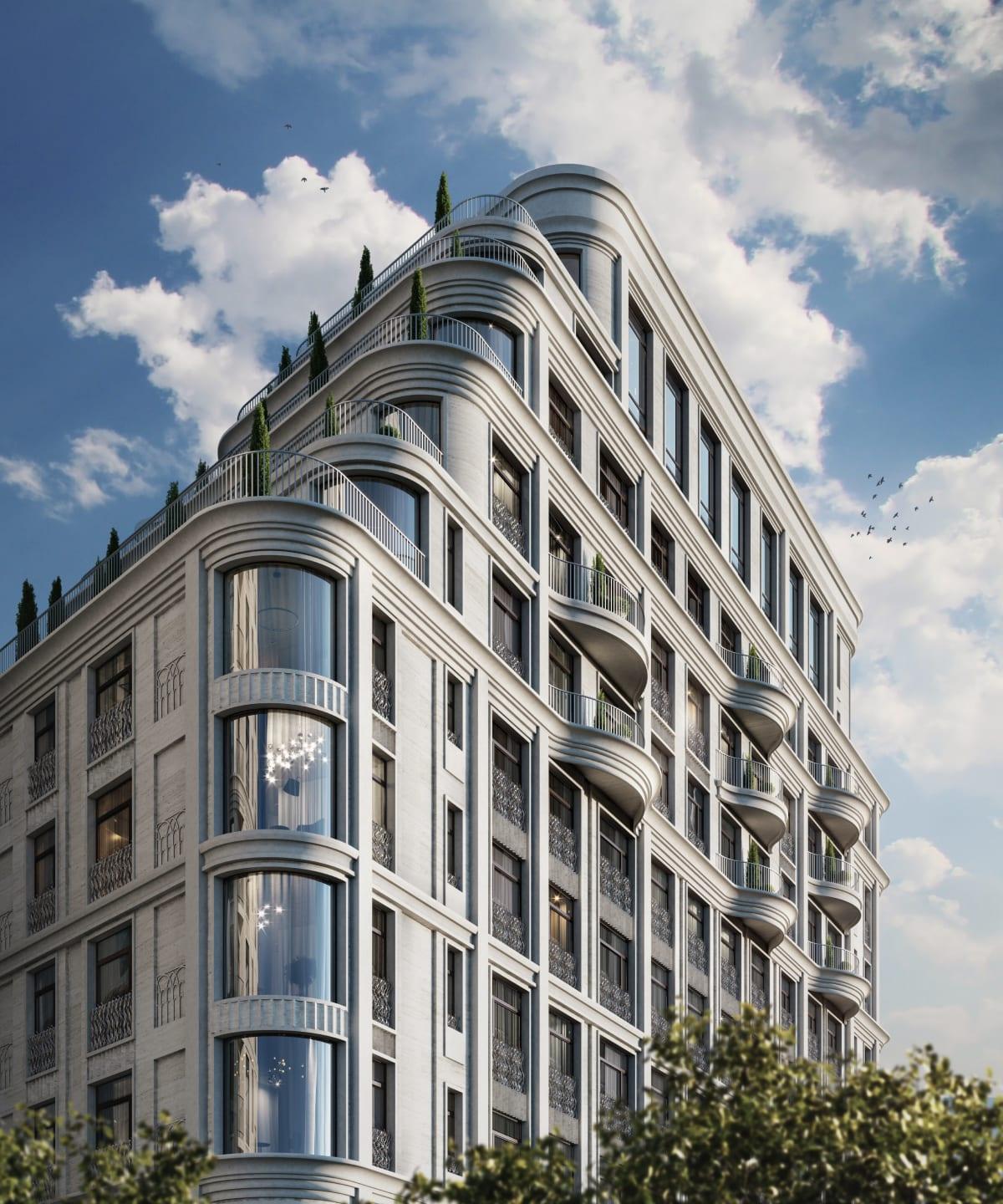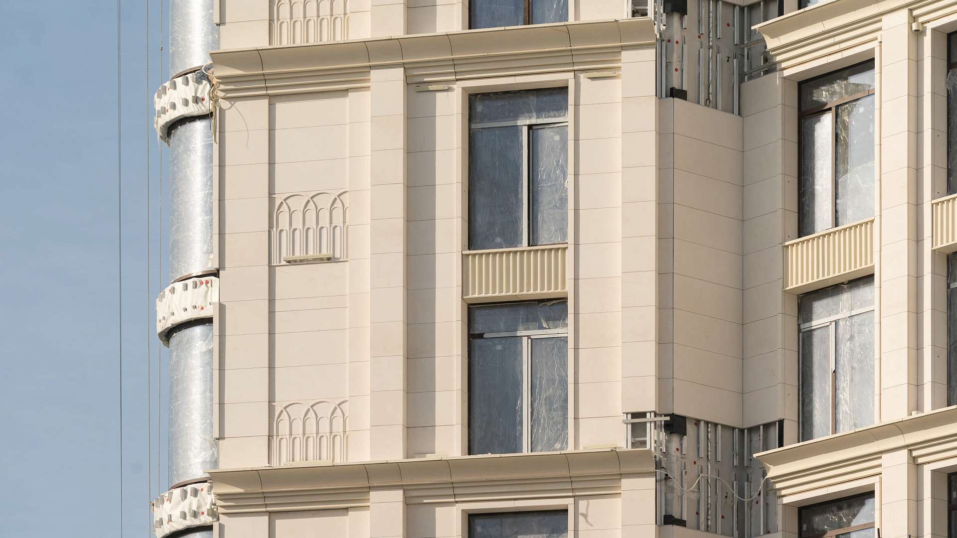 Респектабельные фасады облицованы гранитом, мрамором и украшены изысканной резьбой. За легкими решетками французских балконов —панорамные окна из моллированного стекла. Невесомые на вид металлические декоративные элементы создают ощущение легкости и волшебства.